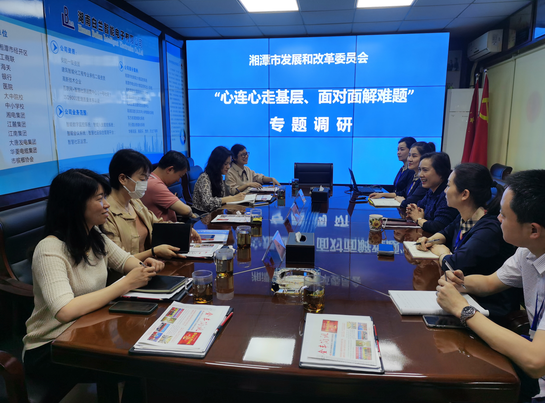5月9日上午,湘潭市發(fā)改委三產(chǎn)辦主任劉朝暉、市統(tǒng)計(jì)局服務(wù)業(yè)統(tǒng)計(jì)科科長(zhǎng)張薇,市發(fā)改委三級(jí)主任科員葉郁,以及區(qū)發(fā)改局、街道、社區(qū)相關(guān)負(fù)責(zé)人一行來我司開展“心連心走基層,面對(duì)面解難題”活動(dòng)工作調(diào)研。