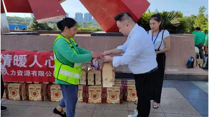 在現(xiàn)場,周卜榮總經(jīng)理一行對園林工作人員不畏炎熱、堅守崗位表示誠摯的慰問和感謝,并將清涼大禮包送到在場的每一位綠化工人手里,讓他們感受到湘潭這座城市的溫情與美好。